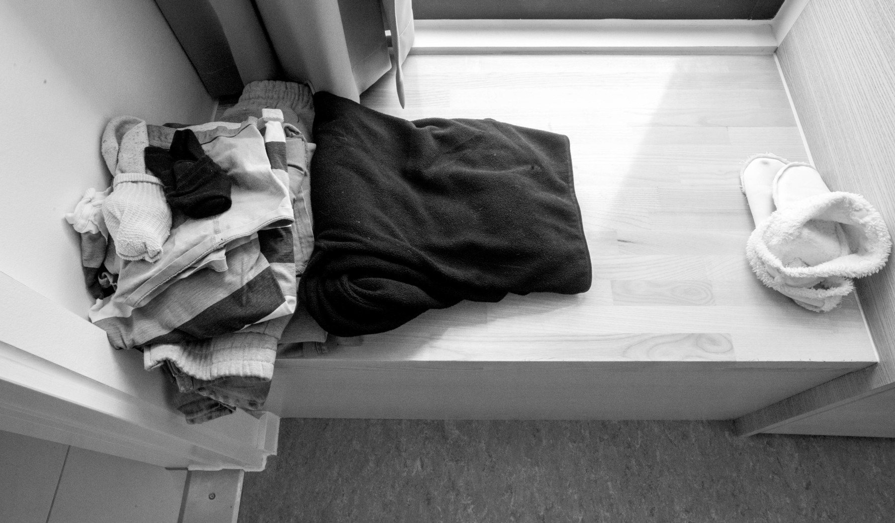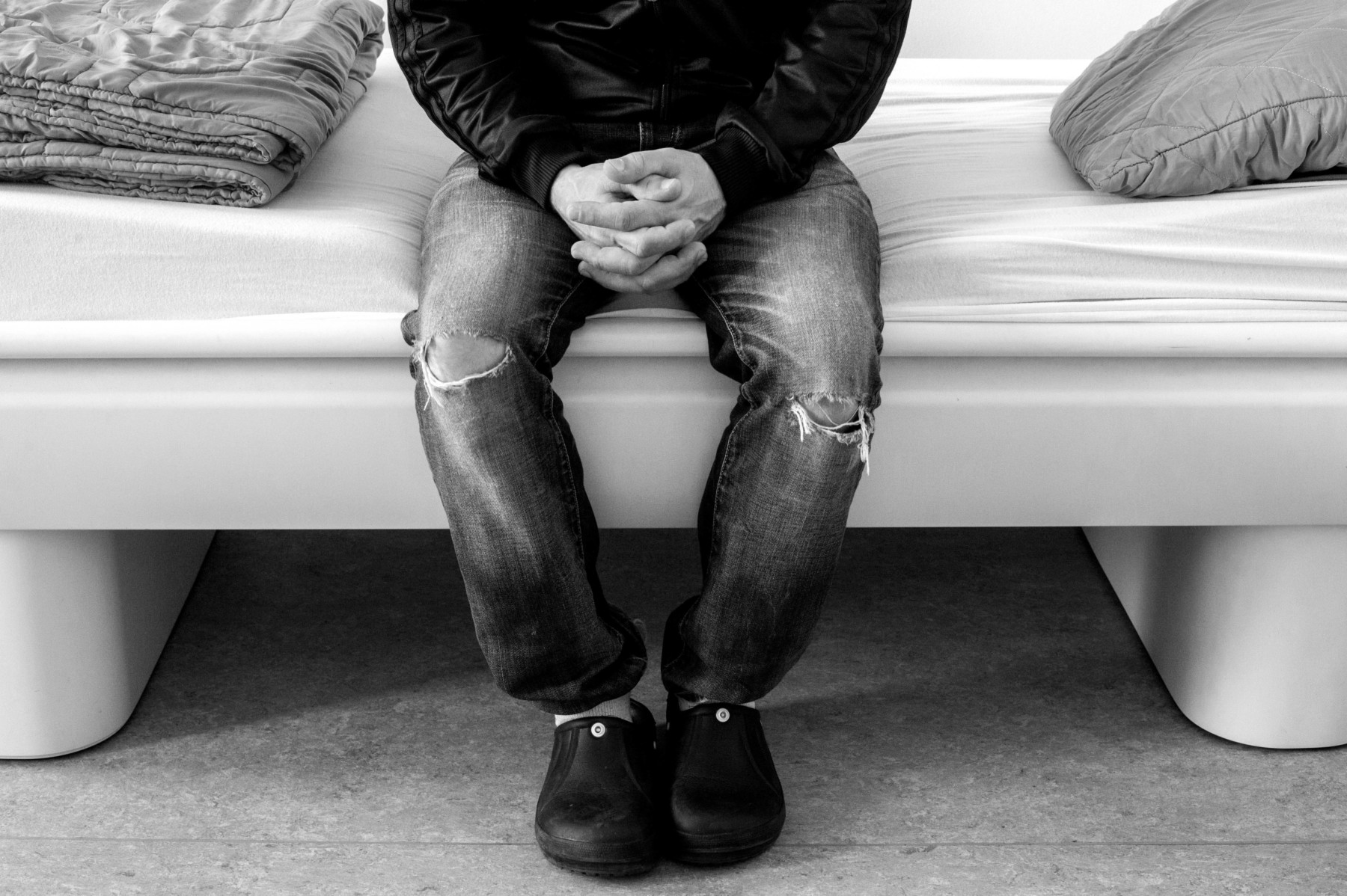 Inde fra et rent, farveløst værelse tager han imod med håndtryk og lukker døren efter sig. Her må han ikke gå tur eller surfe på internettet, når han har lyst. Faktisk må han ikke ret meget andet end at blive – ind til politiet finder ud af, hvad der skal ske i hans sag.